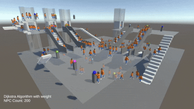 Crowd using escalator with ECS addons. Escalator done in blender with optimal animation performance. NPC do a little wave dance upon reaching interactable target.